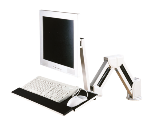 The Athena 131AA Desktop / Wall Mounting System is a flexible and ergonomic mounting solution designed for clinical and high-standard workspaces. Supporting monitors up to 10 kg, including an integrated keyboard tray, this system enables comfortable daily use while maintaining a clean and organized setup.
