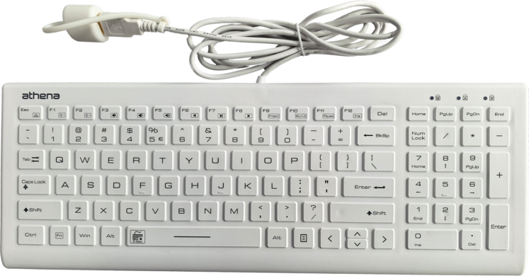 Athena Medical Keyboards are designed for use in environments where hygiene, reliability, and ease of cleaning are essential. Fully sealed and IP68-rated that allows thorough disinfection using commonly applied hospital cleaning agents. The ergonomic layout, integrated numeric keypad, and backlit keys support comfortable daily use, while the robust construction ensures long-term performance in demanding healthcare and high-standard environments.
